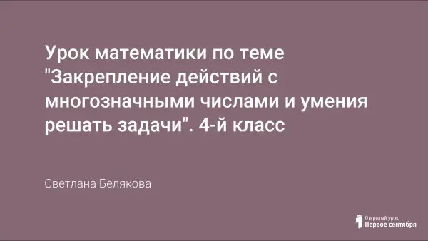 Цель урока: закрепить и систематизировать знания, умения и навыки учащихся по выполнению действий с многозначными числами.