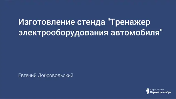 Цель проекта: создание простого по конструкции, малогабаритного, универсального стенда, с помощью которого было бы возможно изучение устройства и принципа работы как простейших электрических схем, так и более сложных. К таким схемам, в частности, относится система зажигания автомобиля. Использован принцип "от простого к сложному" последовательной заменой одних съемных модулей другими.