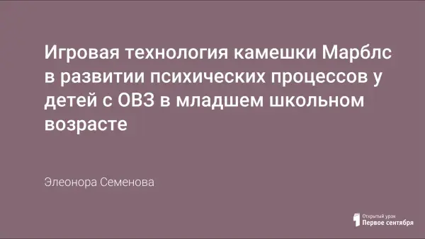 В работе педагога-психолога игровые технологии применяются с целью активизации психических процессов, диагностики, коррекции, адаптации к жизни, оказания первичной психологической помощи. Используя игровые технологии в работе, мы не меняем ребенка и не переделываем его, не учим каким-то специальным поведенческим навыкам, а даем возможность «прожить» в игре волнующие его ситуации. В своей работе я реализую игровую технологию камешки Марблс в развитии психических процессов у детей с ОВЗ.