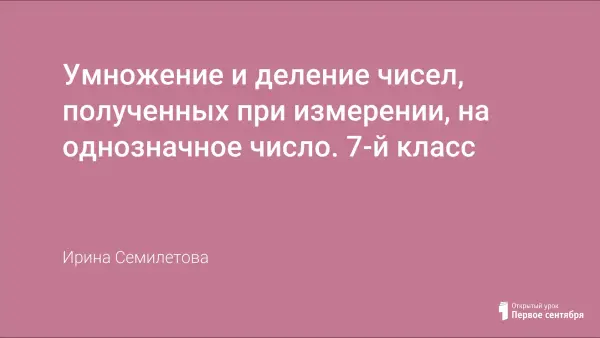 На уроке вводится новый прием деления чисел, полученных при измерении, на однозначное число. Коррекционные упражнения развивают мышление (анализ, синтез, сравнение, обобщение), умение правильно и последовательно рассуждать. Занимательный материал повышает интерес к предмету, закрепляет знания и умения.