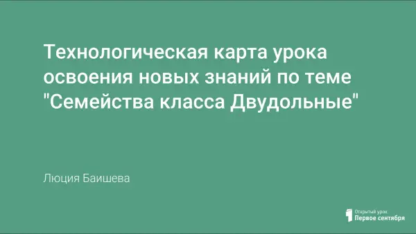Цели урока: открытие учащимися семейства класса Двудольные, формировать умения определять отличия семейств класса Двудольные, развитие исследовательской и творческой деятельности учащихся, а также их коммуникативных способностей, воспитание интереса и положительного отношения к природе.
