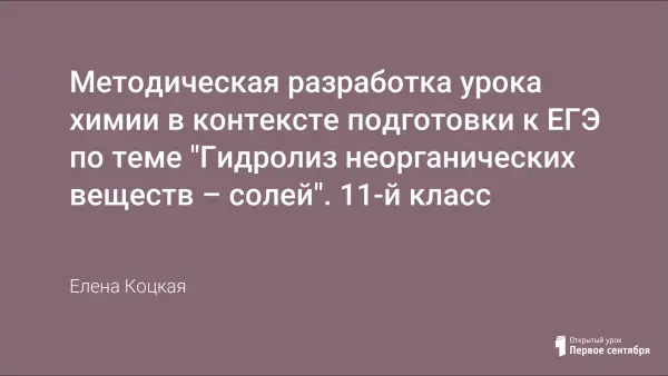 Урок направлен на формирование представления о гидролизе, о сущности гидролиза солей; учащиеся составляют уравнения реакций гидролиза солей в молекулярном и ионном виде, определяют реакцию и тип среды раствора электролита на основании состава соли.