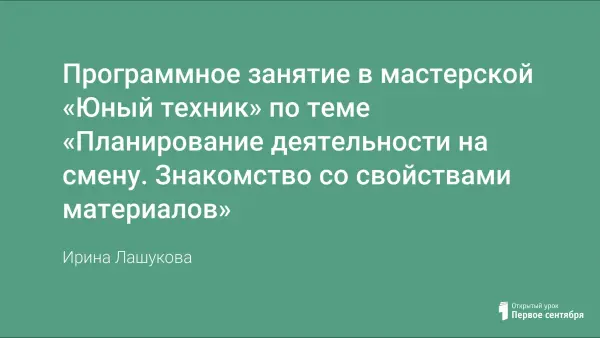 Программное занятие в мастерской «Юный техник» по теме «Планирование деятельности на смену. Знакомство со свойствами материалов»