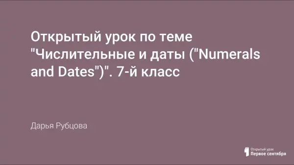 Урок построен по УМК "Английский с удовольствием-7", М.З. Биболетовой и др., но элементы урока можно использовать при изучении темы "Числительные и даты" по другим УМК. Комбинированный урок с элементами ИКТ развивает критическое мышление. Совершенствует лексические навыки, расширяет кругозор; развивает познавательный интерес и активность.