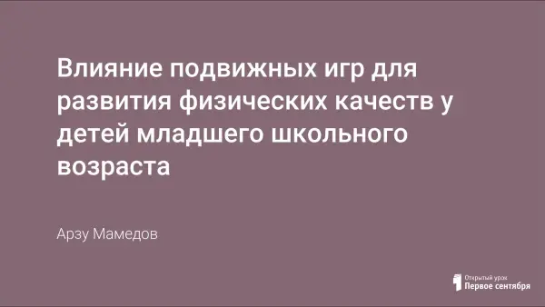 Влияние подвижных игр для развития физических качеств у детей младшего школьного возраста