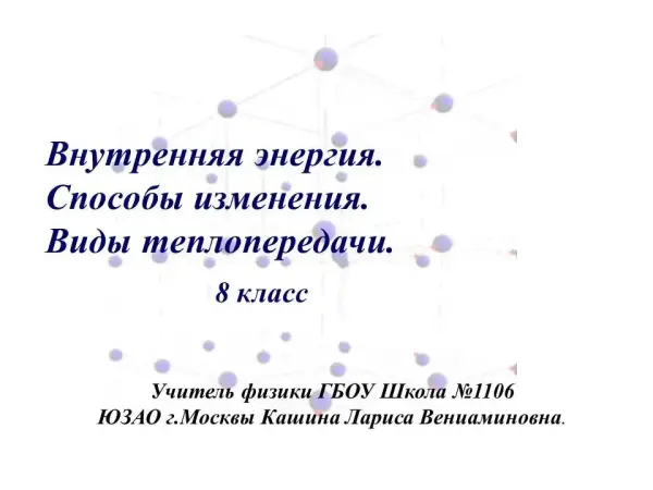 Урок физики «Внутренняя энергия. Способы изменения. Виды теплопередачи». 8-й класс