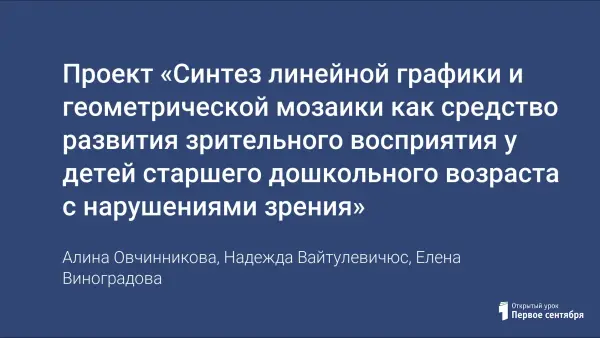 Проект «Синтез линейной графики и геометрической мозаики как средство развития зрительного восприятия у детей старшего дошкольного возраста с нарушениями зрения»