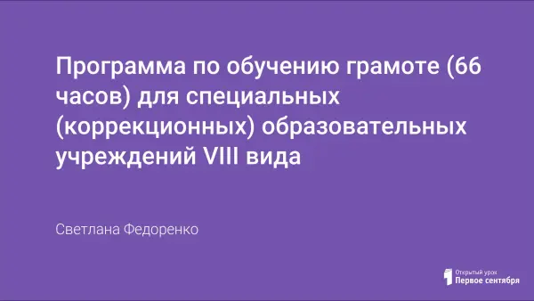 Рабочая программа по обучению грамоте для специальных (коррекционных) образовательных учреждений VIII вида. Программа рассчитана на 66 часов. Предлагается календарно-тематическое планирование. В работе использованы электронные варианты учебной литературы, что очень помогает. А также повышает интерес у учащихся использование электронных ресурсов, которые использую при работе на планшете.