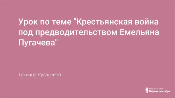 Урок по теме "Крестьянская война под предводительством Емельяна Пугачева"