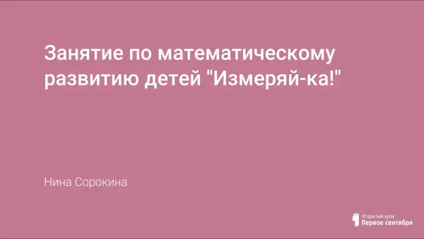 Цель занятия: развитие умения детей выделять параметры объекта, поддающиеся измерению; закрепить знания детей по способам сравнения объектов по величине с помощью условной меры; формирование представления об измерении сыпучих веществ, умений и навыков при решении практических и проблемно-познавательных ситуаций в играх и жизни; учить активно действовать.