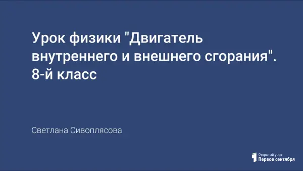 На уроке учащиеся знакомятся с различные видами двигателей, рассматривают внутреннее строение двигателей. Урок построен на основе метода проблемного обучения. Физические проблемные вопросы и задачи оказывают положительное воздействие на эмоциональную сферу ребят.