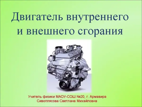 Урок физики "Двигатель внутреннего и внешнего сгорания". 8-й класс