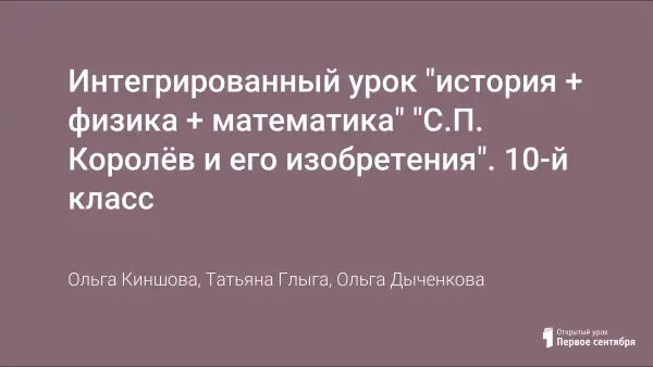 Интегрированный урок "история + физика + математика" "С.П. Королёв и его изобретения". 10-й класс