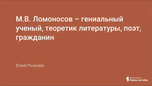 В ходе урока учащиеся знакомятся с неповторимой, уникальной личностью – М.В.Ломоносовым, узнают о человеке определённой эпохи, его системой взглядов, обусловленных исторически; знакомятся с основными жанрами поэтического творчества М.В.Ломоносова.