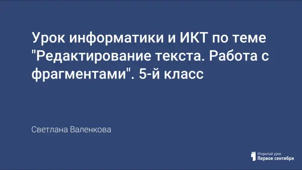 Урок занимает важное место при изучении темы, так как редактирование и умение работать с различными фрагментами текста – один из основных этапов подготовки текстового документа на компьютере. Разнообразные методы поддерживают интерес у детей на уроке: отгадывание загадок, создание красочной и наглядной таблицы, работа с учебником, выполнение практических заданий занимательного характера на компьютерах по редактированию текста.