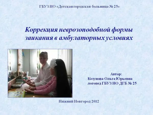 В статье рассматривается неврозоподобная форма заикания. Раскрывается этиология, симптоматика и особенности коррекционной работы. Отмечены главные направления комплексного метода коррекции заикания в амбулаторных условиях.