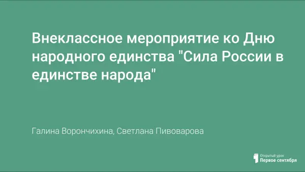 Мы в план мероприятий нашей школы включили тематическую неделю «Славься ты, Русь моя!». Одним из мероприятий недели стало внеклассное мероприятие «Сила России в единстве народа», приуроченный к 403-летней годовщине изгнания интервентов народным ополчением под предводительством Минина и Пожарского (1612 год) и воцарению на престол Михаила Романова.