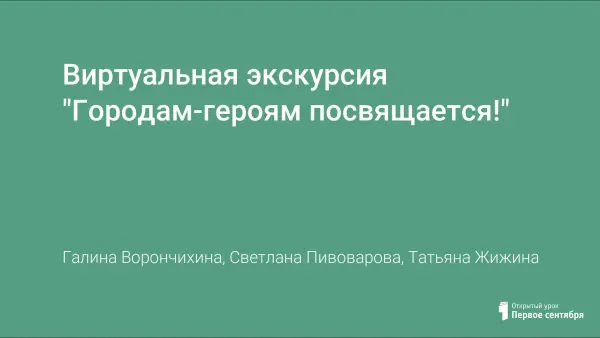 Цель виртуальной экскурсии в том, чтобы провести интересный урок, на котором происходит знакомство с историей городов-героев и историческими достопримечательностями. Учащиеся выступают в роли экскурсоводов, развиваются навыки монолога, стремлению к самосовершенствованию. Для наглядности используется мультимедийное оснащение, карта.