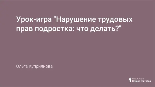 Урок-игра "Нарушение трудовых прав подростка: что делать?"