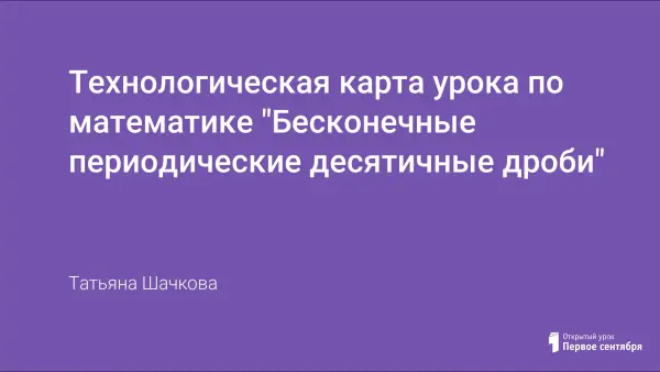 Данный урок – урок «открытия» нового знания по теме «Бесконечные периодические десятичные дроби». На уроке используются разнообразные формы организации учебной деятельности: индивидуальная, фронтальная и работа в парах. Применяются элементы игровой технологии.