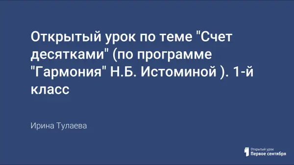 На уроке учащиеся учатся записывать и называть круглые двузначные числа. Совершенствуют вычислительные навыки в пределах десятка. Закрепляются знания состава числа 10. Развивается логическое, наглядно-образное мышление, навыки самоконтроля и взаимоконтроля, познавательный интерес.