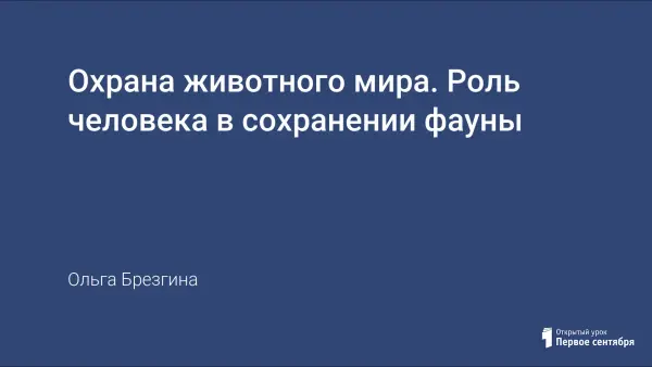 На уроке говорится о необходимости охраны животных, различных формах, роли человека в сохранении фауны. Рассказ учителя о базовых понятиях и терминах с таблицей сопровождается презентацией. Учащиеся формулируют выводы о значении охраны животного мира.