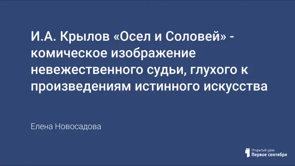 Цель урока: поиск необходимой информации о личности и творчестве И.А. Крылова; определение басни как одного из старейших жанров литературы по характерным признакам; понимание аллегорического смысла басен, морали; деление на смысловые части, составление плана; сравнение и сопоставление между собой героев басни, освоение фразеологизмов, пословиц, поговорок; воспитание в детях доброты, порядочности, тактичности, патриотизма, чувства прекрасного.
