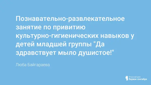 Познавательно-развлекательное занятие прививает культурно-гигиенические навыки детям младшей группы, обогащает словарный запас, дает представление о форме и цвете предмета, воспитывает вежливое отношение друг к другу, создает на занятии благоприятный эмоциональный фон.