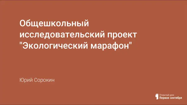Экологический марафон – система мероприятий, изучающих экологическую обстановку в школе и построенных на основе проведения и анализа простейших школьникам экспресс-исследований. Такая форма работы охватывает всех школьников с 1-го по 11-й класс, всех классных руководителей и родителей учеников младших классов. Таким образом все учащиеся знакомятся с теорией научного эксперимента и практически осваивают элементы научного исследования.