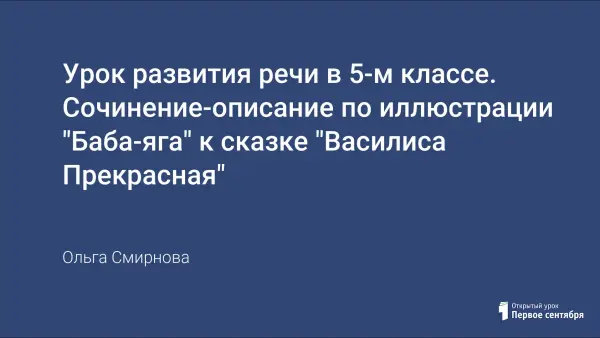 Представлена презентация к написанию сочинения-описания по иллюстрации И.Я.Билибина "Баба-яга" к сказке "Василиса Прекрасная".
