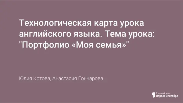 Технологическая карта урока английского языка. Тема урока: "Портфолио «Моя семья»"