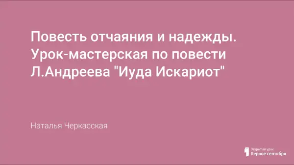 Повесть Андреева «Иуда Искариот» так глубока по своему содержанию и одновременно высокохудожественна по форме, что грешно обойти ее вниманием в школе. Много сказано об извечных проблемах: борьба добра и зла, споры о правомерности лжи во спасение, о том, что цель может оправдывать средства, вечная проблема выбора. Но повесть Леонида Андреева говорит еще и о необходимости и умении любить и прощать. Этим убеждением объясняются поставленные перед уроком цели.