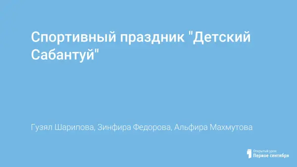 Спортивный праздник дает первоначальные сведения о празднике “Сабантуй”, знакомит с историей культуры татарского, башкирского народа, с традициями и праздниками. Цель мероприятия: воспитывать человеческие ценности: любовь к малой Родине, природе, людям, уважение к ее истории; толерантность – приятие других наций, народов; трудолюбие, честность, доброту. Предварительно ребята заучивали стихи, песни, беседовали об обычаях и традициях башкирского и татарского народа.