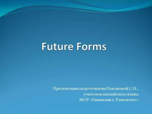 В английском языке существует несколько способов говорить о будущем. Презентация дает информацию о разных формах выражения будущего времени, актуальные примеры, а также сравнение всех способов.