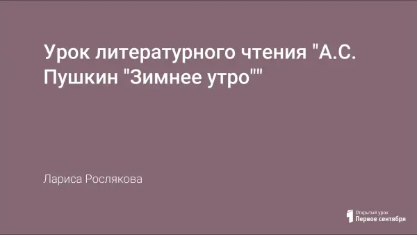 Урок представляет формы работы с лирическим произведением, содержит презентацию и видеофильмы. Учит в лирическом произведении, его прочтении и анализе видеть зиму как часть окружающего мира, слышать, чувствовать собственным внутренним зрением, слухом изображение зимы на картинах, в музыке, видеофильмах.