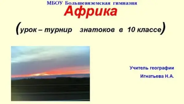 урока-турнир в 10-м классе – ЦОР "Африка" (Презентация 3, приложение 4).