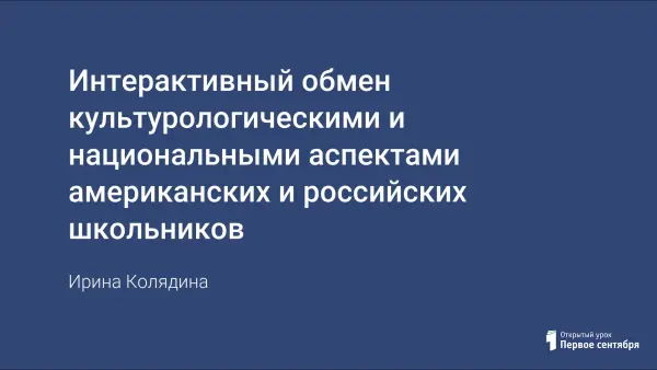 Проект совершенствует процесс обучения в малокомплектной школе, с этнокультурным компонентом, школе-интернате и в общеобразовательных школах, находящихся вдали от больших городов. С помощью интерактивных технологий школьникам предлагается совершить культурологический и исторический обмен знаниями двух стран. Цель: обмен знаниями о своей стране, ее традициях, быте, народе; практика языкового общения – английский, русский.