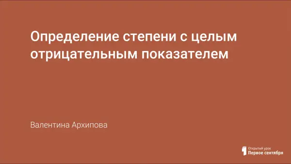 Цель урока: самостоятельная формулировка определения степени с целым отрицательным показателем.