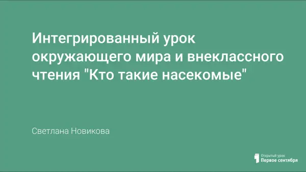 Урок формирования первоначальных предметных навыков и УУД. Цель урока: познакомить с признаками насекомых и показать их многообразие и красоту на примере художественного произведения. Ученики учатся отличать насекомых от других животных по количеству ног. На уроке развивается умение работать в группах, с информацией, ИКТ, извлекать из художественного текста необходимые сведения.