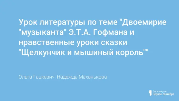 Урок литературы по теме "Двоемирие "музыканта" Э.Т.А. Гофмана и нравственные уроки сказки "Щелкунчик и мышиный король""
