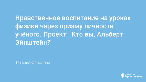 Ученый – это совсем не схематическая, «иконообразная» личность, это человек со своими положительными и отрицательными качествами, порой противоречивый в делах и мыслях, и отчасти именно это вызывает повышенный интерес к изучению его как личности. Раскрывая облик ученого нужно непременно обратить внимание обучающихся на то, что великие люди, к числу которых мы можем смело отнести великого немецкого ученого-физика Альберта Эйнштейна, раньше других понимали сущность и значение сделанных открытий.