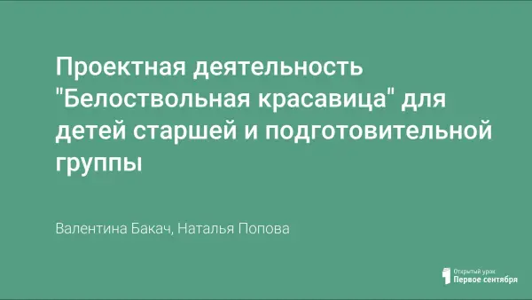 Проектная деятельность "Белоствольная красавица" для детей старшей и подготовительной группы