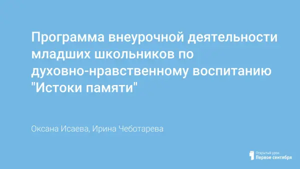 Программа внеурочной деятельности младших школьников по духовно-нравственному воспитанию "Истоки памяти"