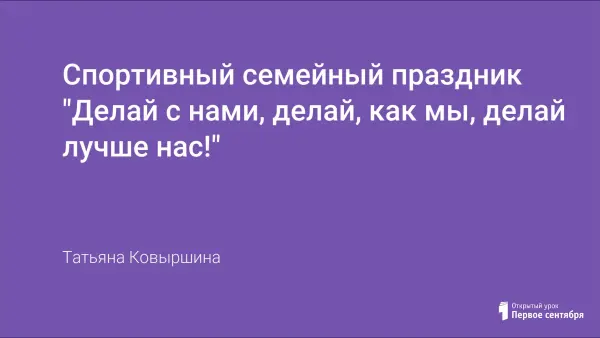 Хорошей формой спортивной работы в школе является организация участия родителей в соревнованиях семейных команд, где создаются благоприятные условия не только для разностороннего физического развития и укрепления здоровья всех участников, но и для воспитания творческих отношений в семье. Основу семейных соревнований составляют эстафеты и командные игры с поочерёдными действиями участников.