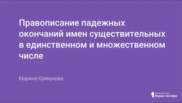 На уроке повторяются понятия «существительное»; правописание падежных окончаний имен существительных; развиваются навыки правильного написания, определяется род, число, падеж и склонение имен существительных.