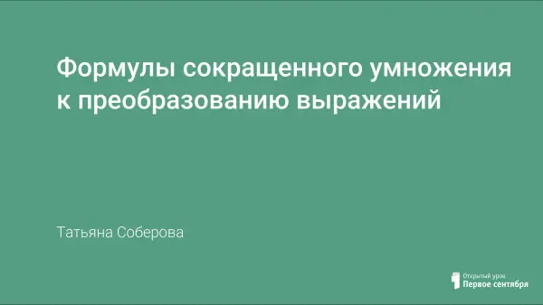 На уроке закрепляются знания по теме; отрабатываются навыки применения формул сокращенного умножения к преобразованию алгебраических выражений.