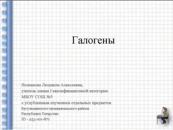 Цифровой образовательный ресурс "Урок изучения нового материала по теме «Галогены»" (программа О.С. Габриеляна) содержит презентацию с необходимыми флэш- и видеороликами, интерактивными таблицами и проверочными текстами для закрепления пройденного материала.