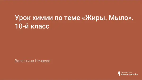 «Жиры. Мыло» ‒ урок изучения нового материала, формирует у учащихся представление о жирах и мыле как химических соединениях, способах получения, переработки, применения, их значения в природе и жизни человека. Компьютерная презентация, эксперименты и игровой момент делают урок наглядным.