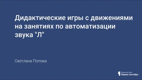 Удовлетворение потребности ребенка в движениях является важнейшим условием его нормального развития – не только физического, но и интеллектуального. Физическая активность способствует улучшению памяти, процессов обучения, снимает напряжение, повышает тонус и работоспособность. В статье представлены дидактические игры с двигательной нагрузкой, используемые на этапе автоматизации звука [Л]. Описание игры включает и примерный лексический материал.
