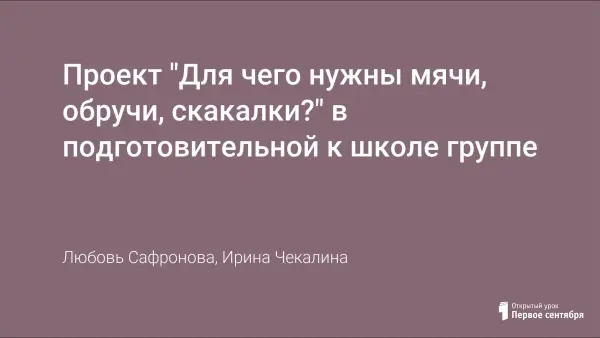 Проект "Для чего нужны мячи, обручи, скакалки?" в подготовительной к школе группе
